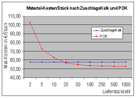 oder 1.000 Stück) stark auf die Beaufschlagung auf die Materialeinzelkosten aus.